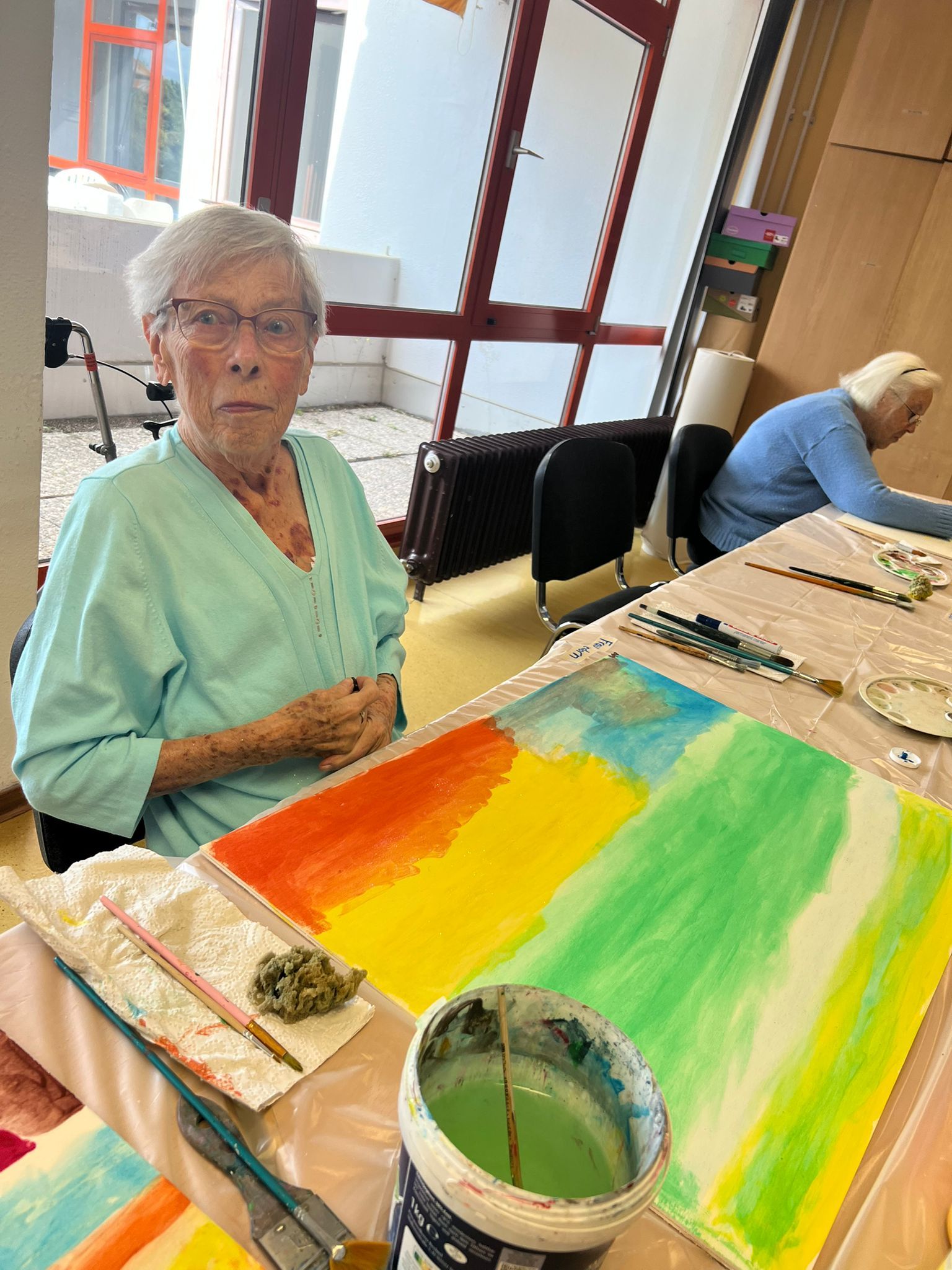 Konzentriert waren wir bei der Arbeit, diesen Moment, das Gefühl im Bild zu transportieren. Keine leichte Aufgabe, doch am Schluss bewunderten wir neun Kunstwerke, die wir zusammen an unserer Jubiläumsfeier auf der Bewohnerausstellung “Unser Leben sei ein Fest!” präsentieren durften.