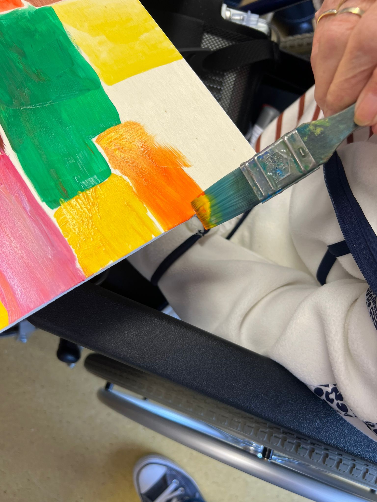 Mit jedem Pinselstrich entsteht er mehr und ruft Erinnerungen wach- der Genussmoment, den unsere Bewohnerinnen im Malatelier mit Susann Tabatabai-Schweizer und Johanna Nefzger-Kladiwa eingeladen waren auf Holz zu bringen.